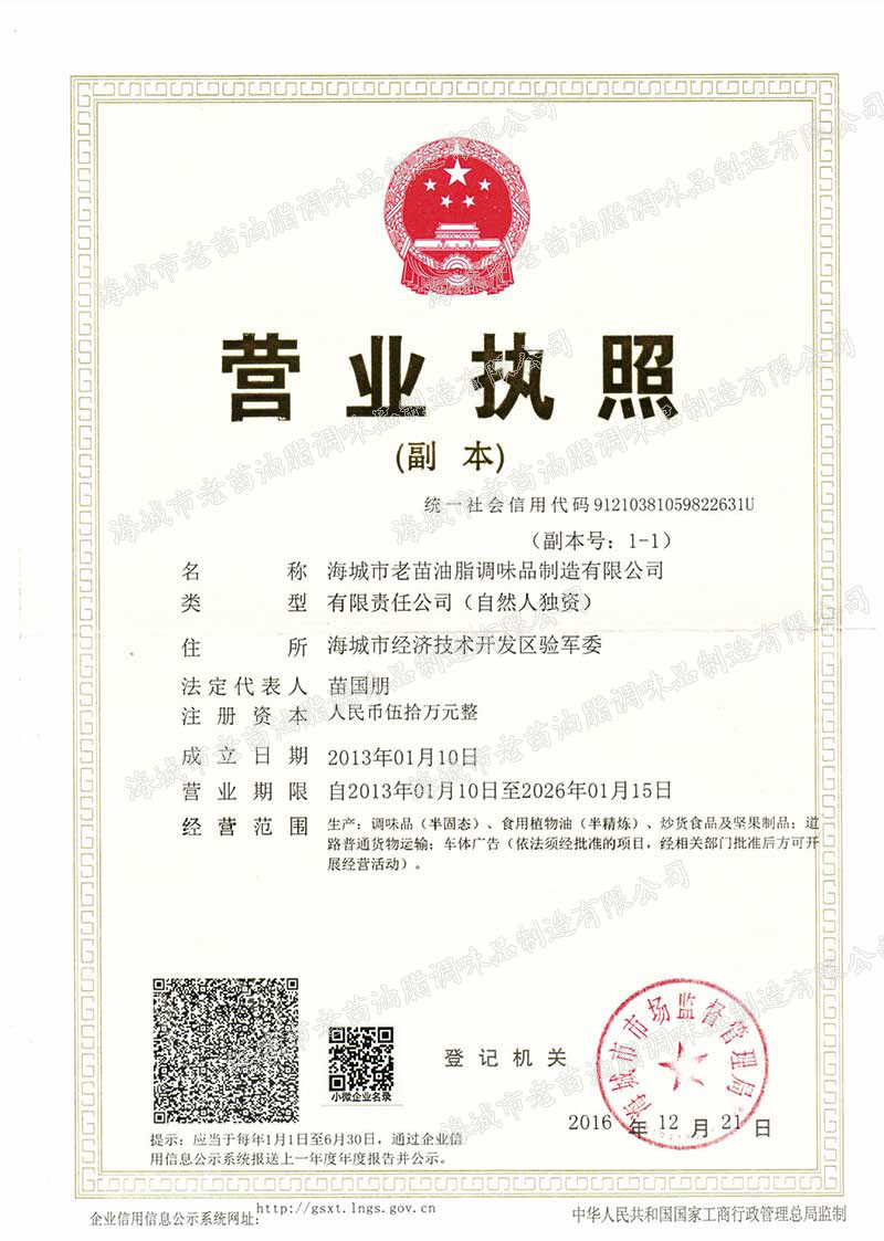 《苗大朋》是海城市老苗油脂調(diào)味品制造有限公司中一個(gè)被中國商標(biāo)局成功注冊(cè)品牌。